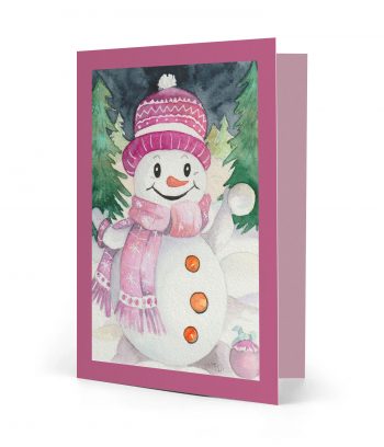 Auf der Weihnachtskarte ist ein kreatives, handgemaltes Aquarell als Druck abgebildet. Die Außen- und Innenseite der Karte sind farblich auf das Motivbild abgestimmt. Rückseitig steht ein kurzer Text mit Weihnachtsgrüßen.